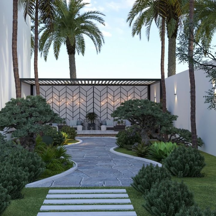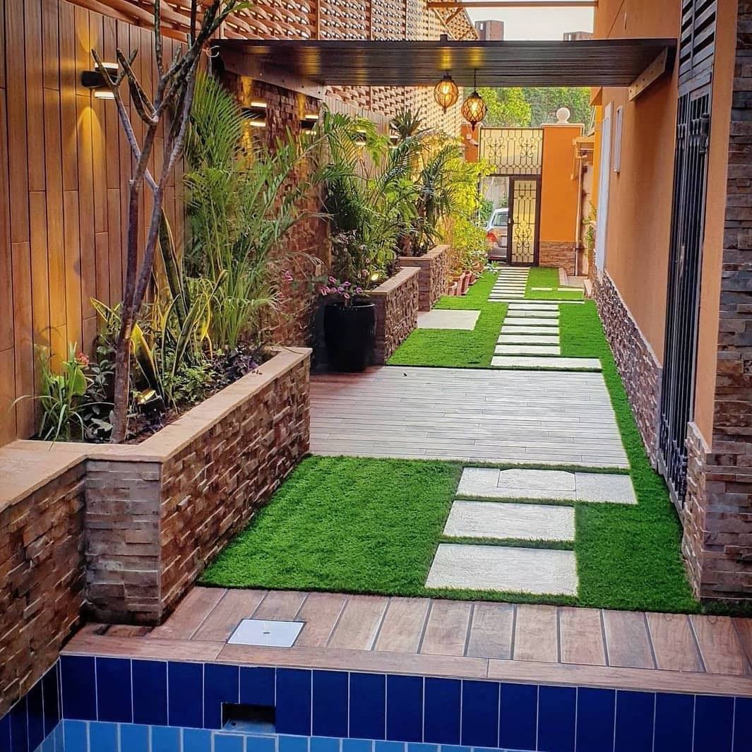 اختيار النباتات والعناصر الخضراء: اختر النباتات التي تناسب مناخ منطقتك ومتطلبات الصيانة. يمكنك استخدام الأشجار والشجيرات والزهور لإضفاء جمال على الحديقة2.