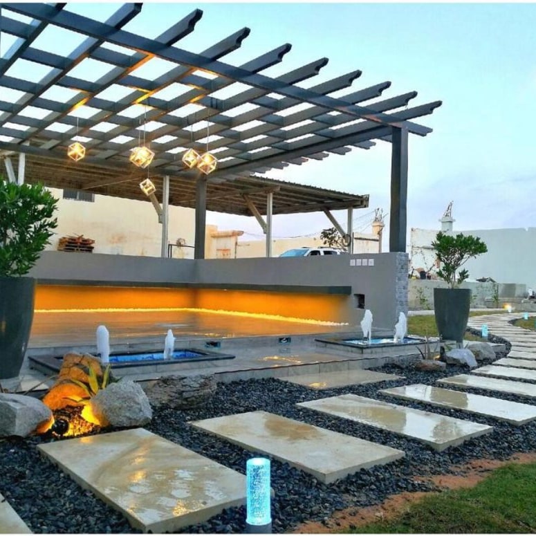 العناصر المائية: النافورات والبرك المائية تضيف لمسة جمالية وهدوء إلى الحديقة. اختر العناصر المائية التي تناسب حجم الحديقة2.